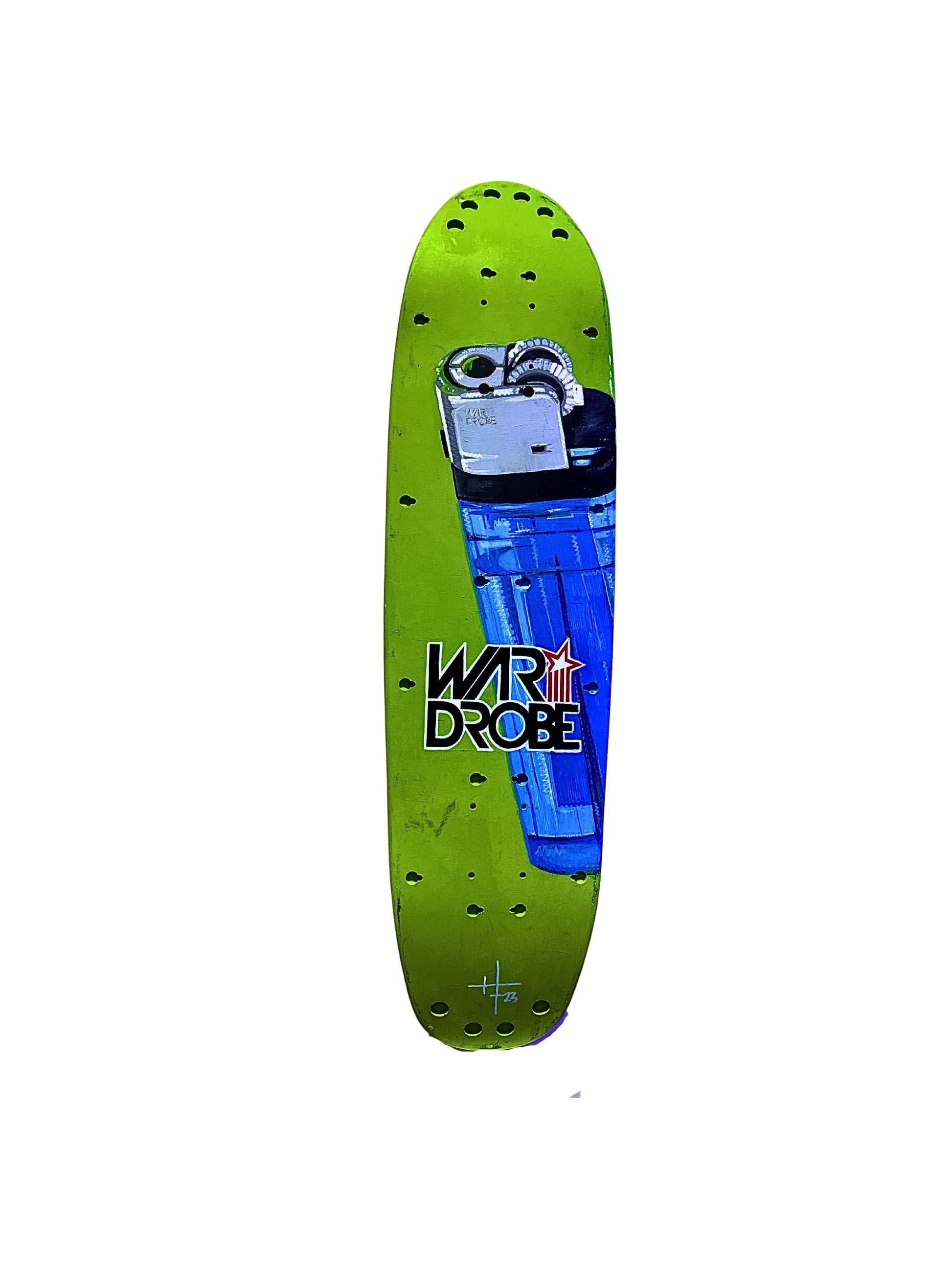 Lit by Houston Frazier: This deck blurs the line between rebellion and elegance. Imagine a blue cigarette lighter, etched into the wood. The universal symbol to blaze up makes this deck a conversation starter. Whether you ride it or hang it on your wall, it’s a statement that says, “I spark creativity.” 🔥💨